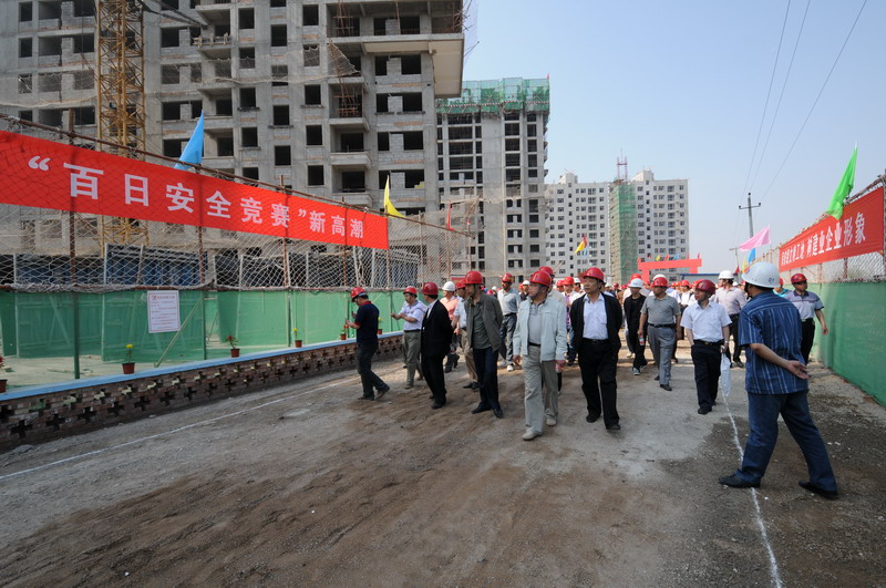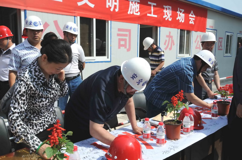 2010年6月4日,張家口住建局在我集團六公司承建的張家口親河苑小區(qū)項目部召開了建筑施工安全文明施工現(xiàn)場會,張家口市住建局局長李義、安監(jiān)站站長張芝祥及各區(qū)縣住建局、安監(jiān)站負責(zé)人,施工、監(jiān)理單位負責(zé)人共72個單位220余人出席了會議,并在我集團安全百日賽的宣傳條幅上了簽字。