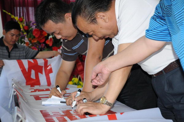 隨著全體與會(huì)人員在安全生產(chǎn)宣傳標(biāo)語上簽名,集團(tuán)公司安全生產(chǎn)百日賽暨安康杯競賽活動(dòng)正式拉開了序幕。