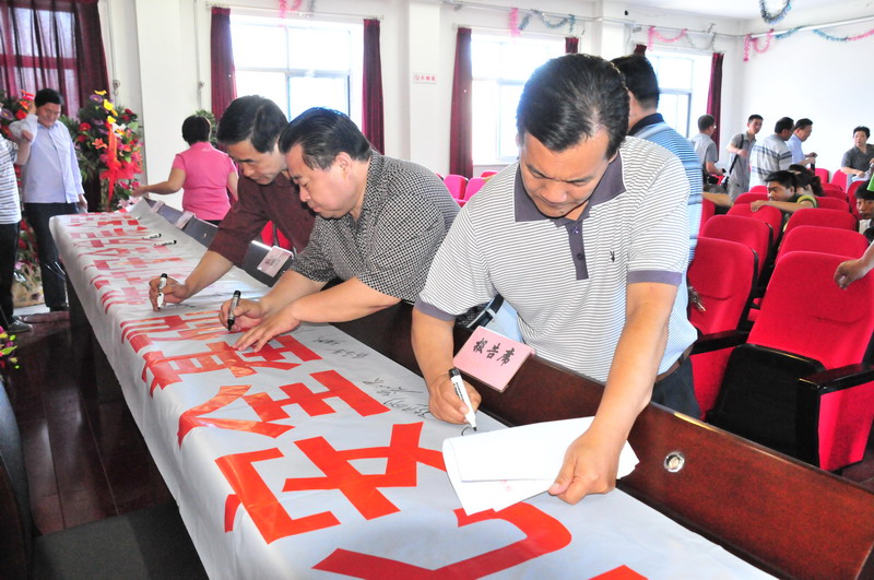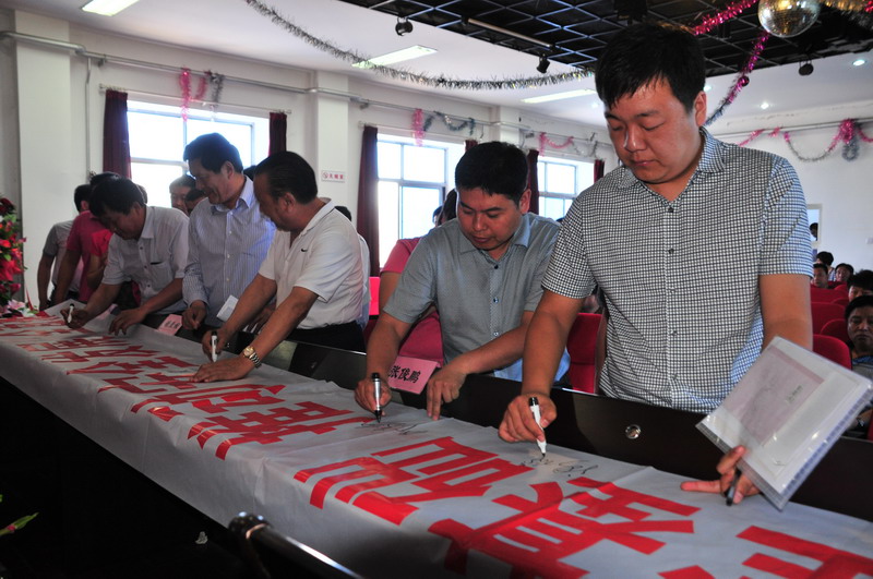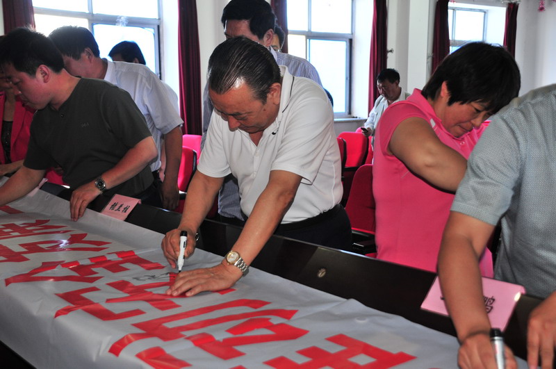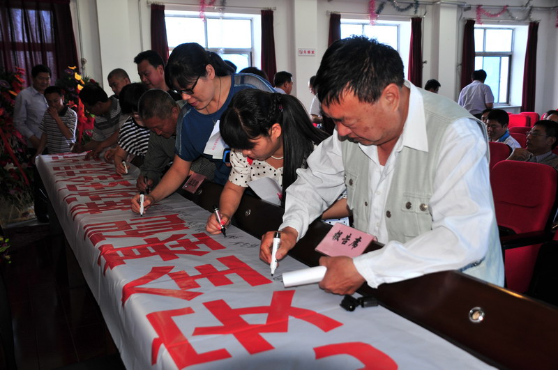 參會人員在“強化安全基礎,推動安全發(fā)展,全面推行標準化”條幅上簽字